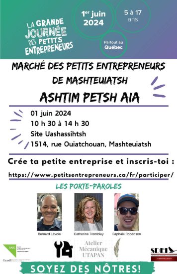 Depuis février, la société de développement économique Ilnu (SDEI) travaille fort pour la grande journée des petits entrepreneurs qui aura lieu ce samedi 1 juin de 10 h 30 à 14 h 30 !
