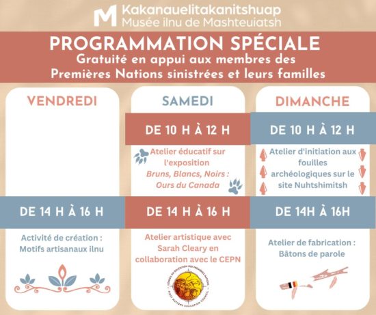 Programmation spéciale pour les sinistrés au Musée Ilnu de Mashteuiatsh